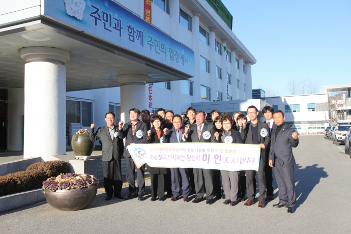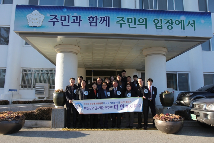 2017년 2월 17일 인제군의회 정문에서 한의동의장 및 군의원들과 직원들은 【2018 평창동계올림픽의 성공개최를 위한 미.인캠페인】을 했다.