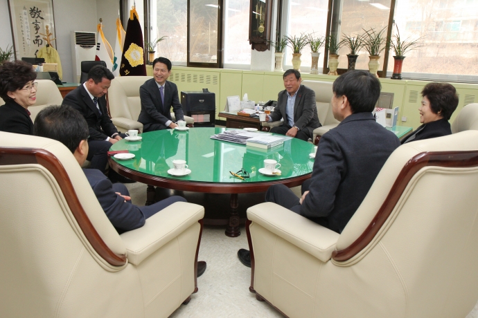 2017년 2월 7일(화) 10:30 군의회의장실에서 한의동의장 및 군의원들(엄윤순, 강순복, 이기호, 최덕용, 최종열)은 인제스피디움 공동대표단과 상견례를 가졌다.