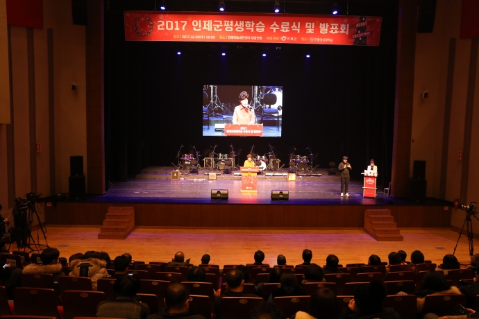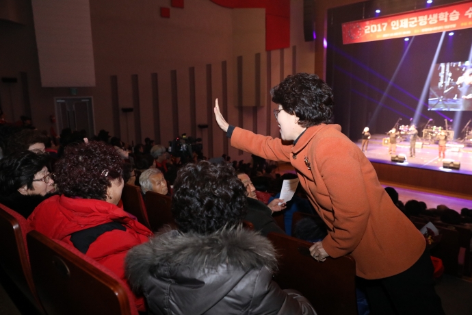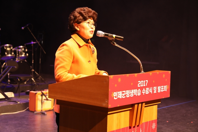 2017년 12월 20일(수) 19:00 하늘내린센터 대공연장에서 본의회 엄윤순부의장은 【2017 인제군 평생학습센터 수료식 및 발표회】에 참석하여 축하 격려해주었다.