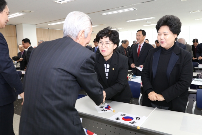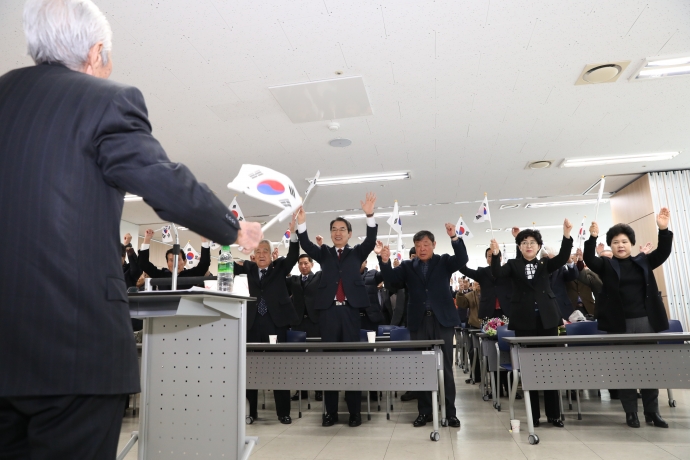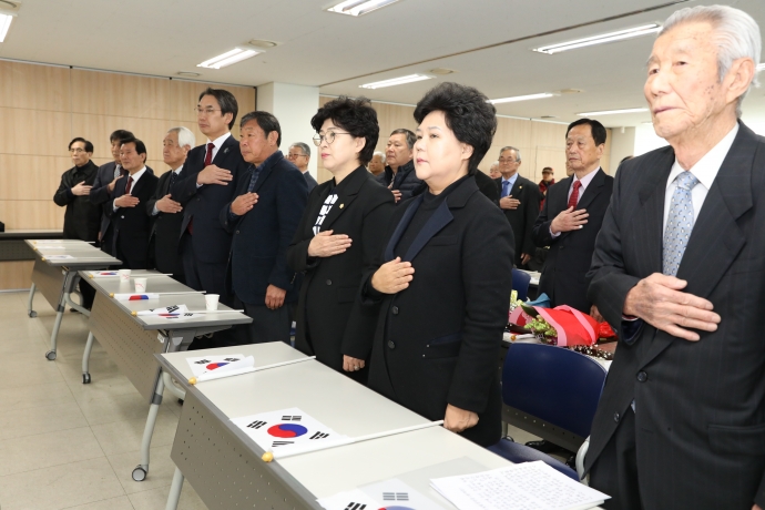 2018년 3월 1일(목) 09:30 하늘내린센터 4층에서 본의회 한의동의장과 엄윤순부의장, 강순복의원은 【제99주년 3.1절 기념식】에 참석하여 기념식을 함께 했다.