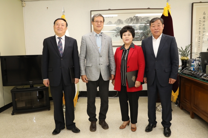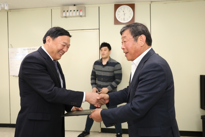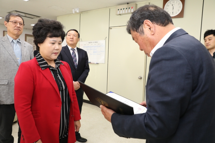 2018년 4월 9일(월) 11:30 본의회의장실에서 한의동의장은 【2017 회계연도 결산검사】시 결산검사위원들(강순복위원, 정희은위원, 고재옥위원)에게 위촉장을 수여했다.
