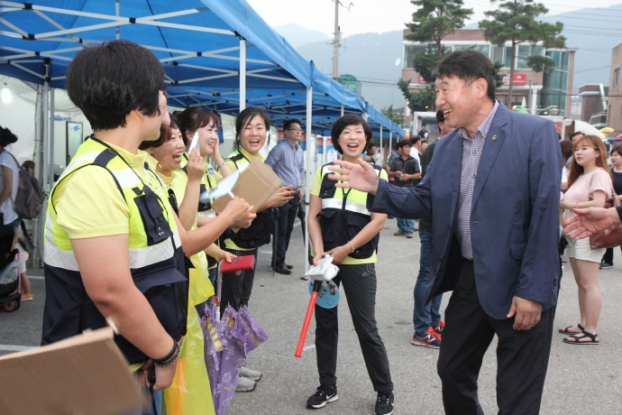 2017년 7월 21일(금) 19:30 정중앙휴게소에서 본의회 한의동의장 및 군의원들(엄윤순부의장, 강순복의원, 이기호의원, 이춘만의원, 최덕용의원, 최종열의원)은 【2017 제4회 바퀴축제 개막식】에 참석하여 축하 해 주었다.