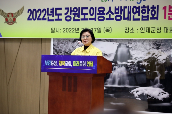 2022년 3월 17일(목) 15:00 인제군청대회의실에서 본의회 김용자의장은 『강원도의용소방대연합회 제1분기 정기회의』에 참석하여 격려해주었다.
