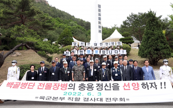 2022년 6월 3일(금) 11:00 용대리 백골병단전적비에서 본의회 김용자의장은 『6.25 참전 71주년 및 전몰장병합동추모식』에 함께 했다.