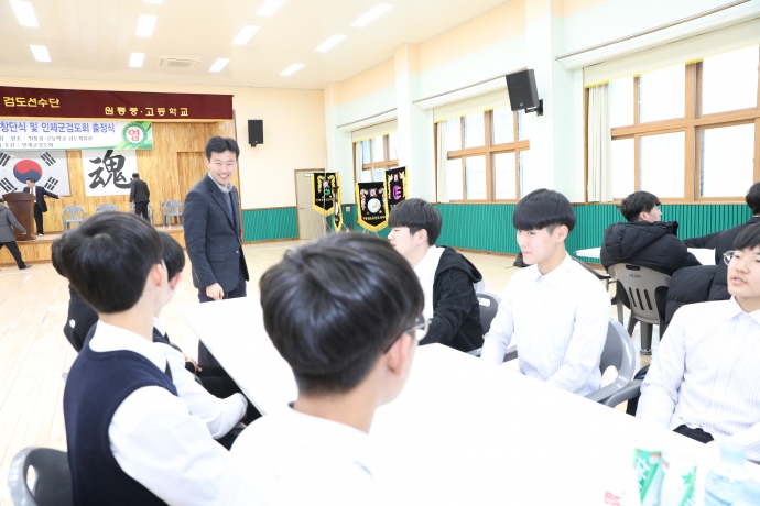 2019년 2월 8일(금) 원통고등학교체육관에서 본의회 김상만의장과 김도형의원, 최종열의원, 한수현의원은 【2019 인제군검도회 출정식 및 원통초등학교 검도부 창단식】에 참석하여 축하 격려해 주었다.