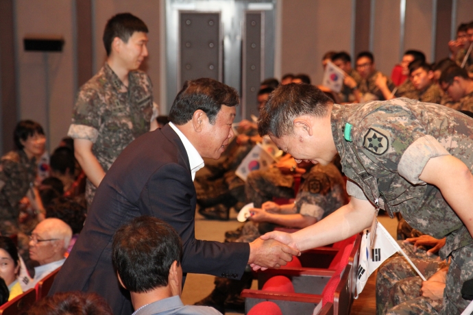 2015년 8월 14일(금) 하늘내린센터 대공연장에서 [12사단 을지 호국문화제]를 군의회의장(한의동)이 참석하여 축사 및 다채로운 공연을 관람 하였다.