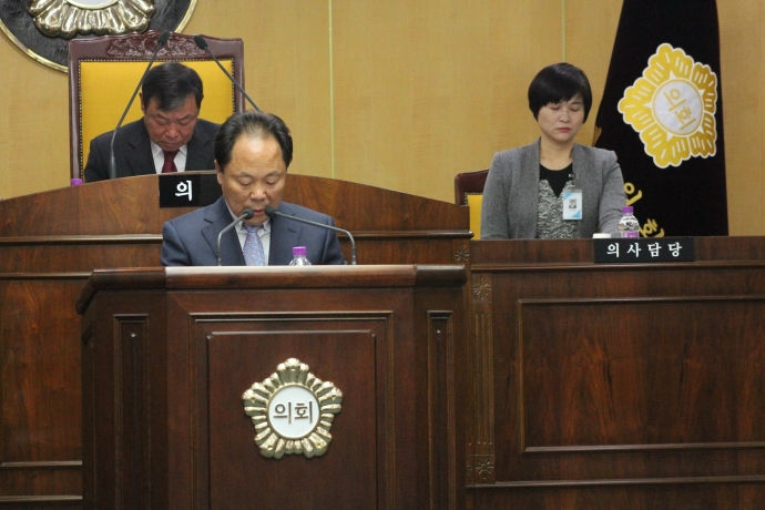 2016년 11월 25일(금) 10:00 의회 본회의장에서 한의동의장 및 군의원들(엄윤순, 강순복, 이기호, 최덕용, 최종열) 【제215회 인제군의회 제2차 정례회 의사일정 제1차 본회의】를 가졌다.