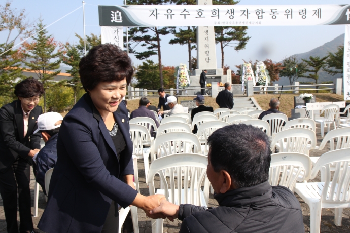 2016년 10월 20일(목) 11:00 자유수호희생자 위령탑에서 군의회엄윤순부의장 및 강순복의원 최덕용의원은 【제36회 자유수호 희생자 합동위령제】에 참석하여 유가족들을 위로해주었고 위령제추모를 가졌다.