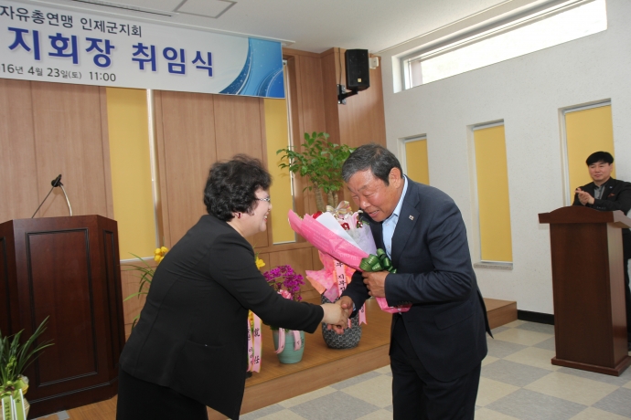 『한국자유총연맹 인제군지회장 취임식』 에 참석하여 역임하는 지회장(방선수)을 축하 격려해 주었다.