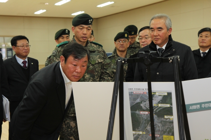 2016년 1월 12일(화) 13:30 인제군의회 한의동의장은 관내 주민대피시설 및 재해 위험지구 현지 점검차 방문한 국민안전처 차관과 주요사업지 동행하였다.