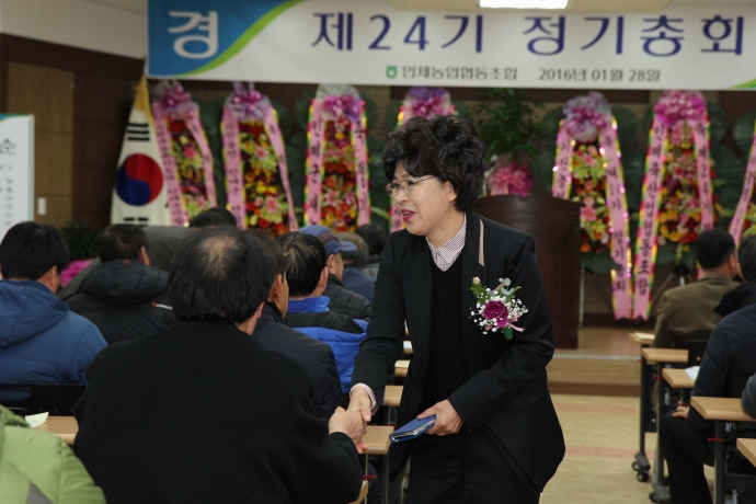 2016년 1월 28일(목) 10:00 농협하나로마트 2층에서 군의회 한의동의장 및 군의원들(강순복, 엄윤순, 이기호, 최덕용, 최종열)은 【인제농협 제24기 정기총회】에 참석하여 동료 엄윤순의원의 감사패 수여 축하와 더불어 회원들을 위로 격려 해주었다.