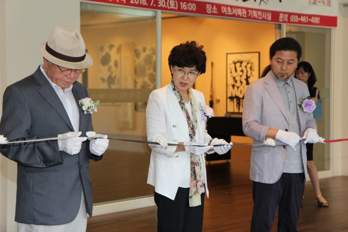 2016년 7월 30일(토) 16:00 인제군의회엄윤순부의장은 【캘리그라피시대 전시】개막행사에 참석하여 축하 격려와 더불어 작품을 관람하였다.