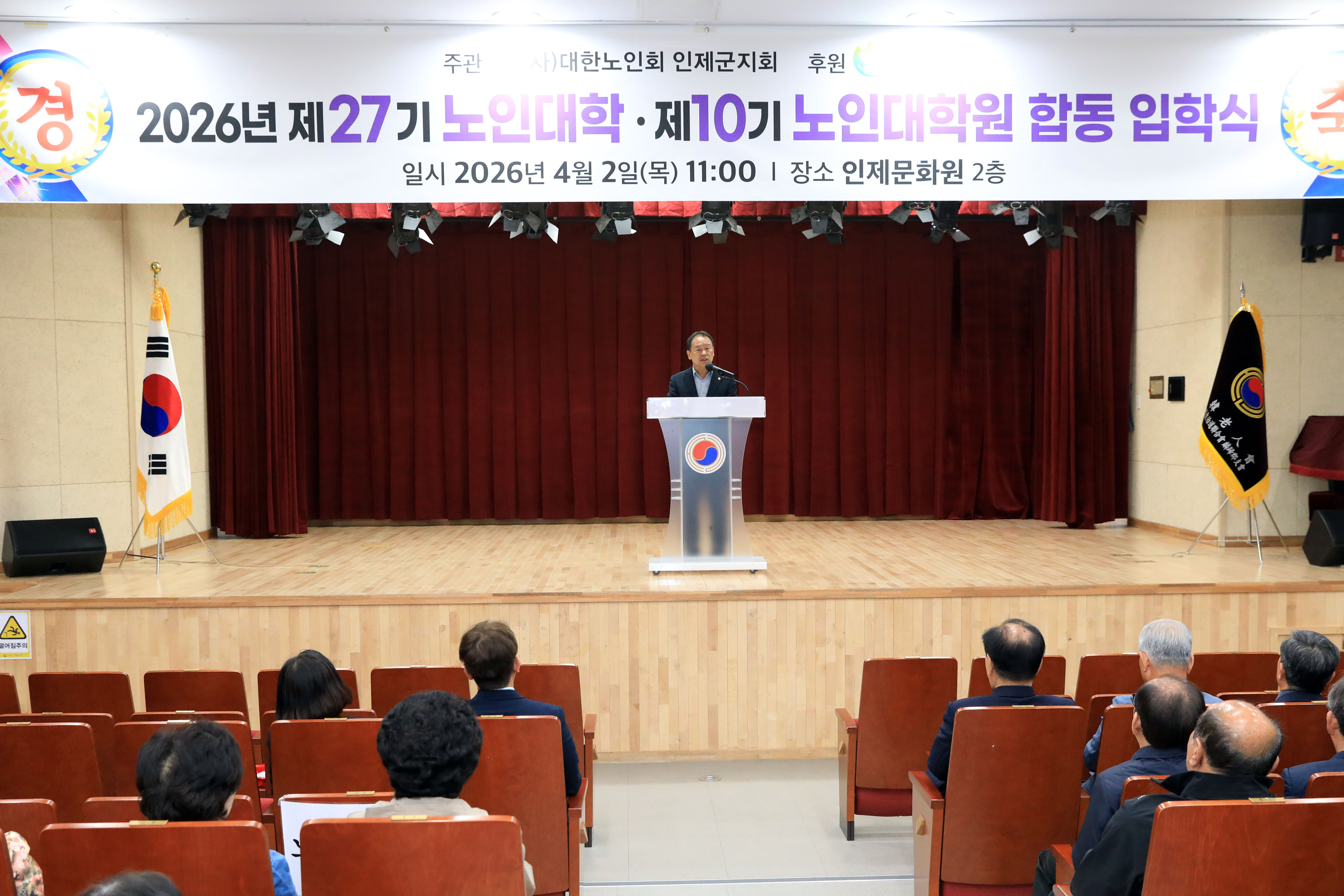 2026년 4월 2일(목) 오전 11시 인제문화원 2층에서 개최된 『2026년 제27기 노인대학 · 제10기 노인대학원 합동 입학식』에 이춘만의장과 신동성부의장, 김도형의원, 김재규의원, 이수현의원, 황현희의원이 참석하여 노인대학, 노인대학원 입학생들과 축하의 자리를 함께 하였다.