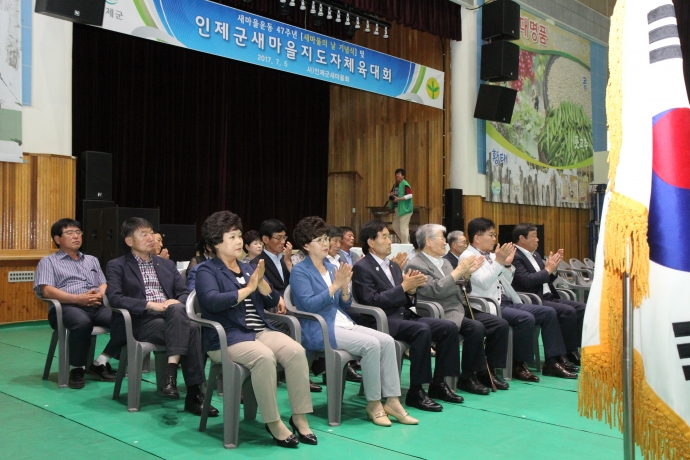 2017년 7월 5일(수) 11:00 인제실내체육관에서 본의회 한의동의장 및 군의원들(엄윤순부의장, 강순복의원, 이기호의원, 이춘만의원, 최종열의원)은 【2017 새마을의 날 기념식 및 새마을지도자 체육대회】에 참석하여 축하 격려해주었다.