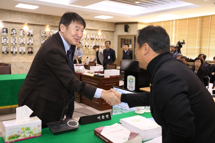 2017년 11월 30일(목) 09:30 군청대회의실에서 이기호위원장과 엄윤순위원, 강순복위원, 이춘만위원, 최덕용의원은【제222회 인제군의회 정례회(행정사무감사1일차)】를 가졌다.