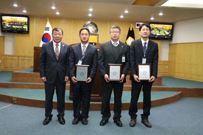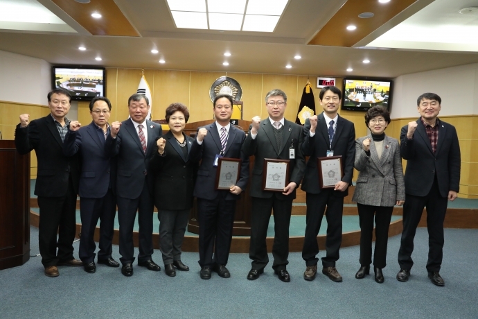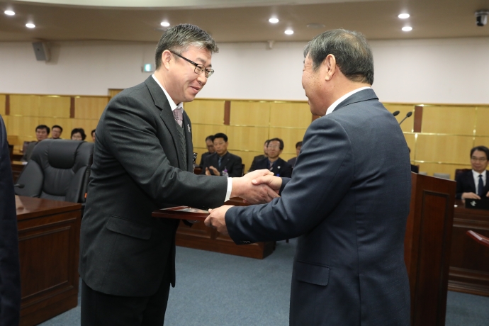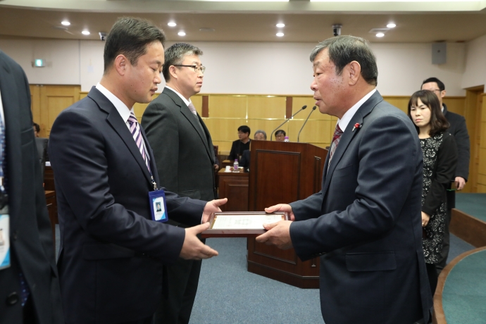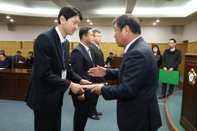 2017년 12월 20일(수) 10:30 본회의장에서는 한의동의장 및 의원들은 제222회 인제군의회 정례회 본회의를 가졌다. 더불어 김광래담당, 전성구담당, 김선익담당에게 감사패를 전달하였다.