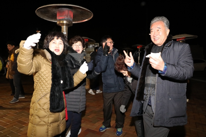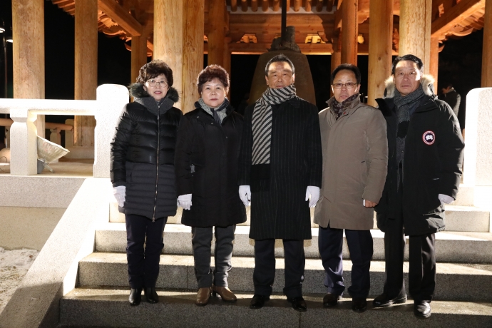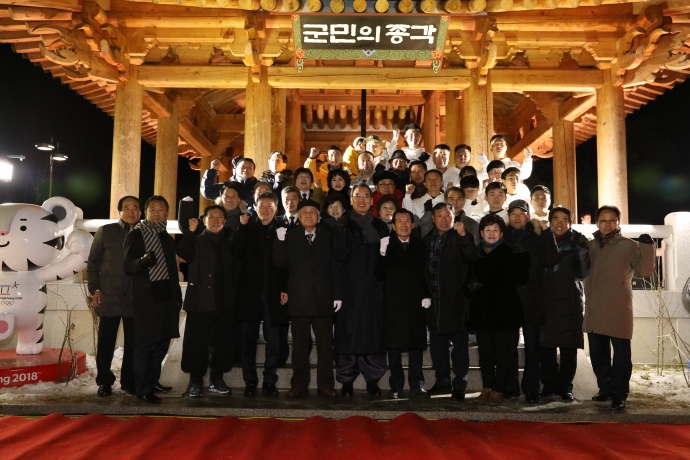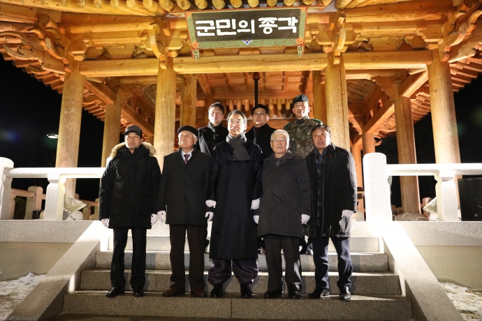 2018년 1월 1일(월) 12:00 합강정일원에서 본의회 한의동의장 및 군의원들(엄윤순부의장, 강순복의원, 이춘만의원, 최덕용의원, 최종열의원)은 【새해맞이 군민의 종 타종행사】를 가졌다.