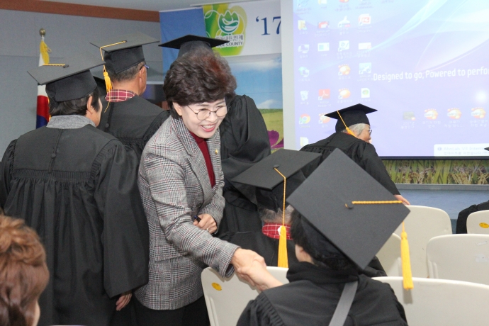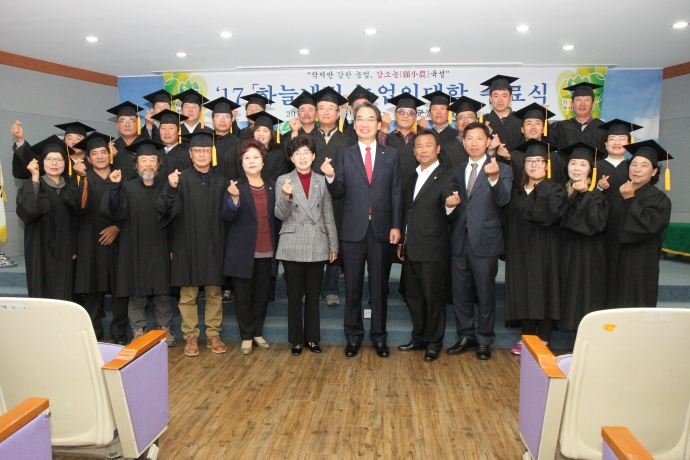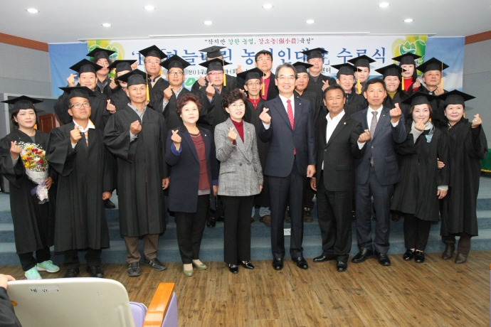 2017년 10월 31일(화) 14:00 인제군농업기술센터 3층 교육장에서 본의회 엄윤순부의장 및 강순복의원, 이춘만의원, 최종열의원은 【하늘내린 농업인대학 수료식】에 참석하여 수료생들을 축하 격려해주었다.