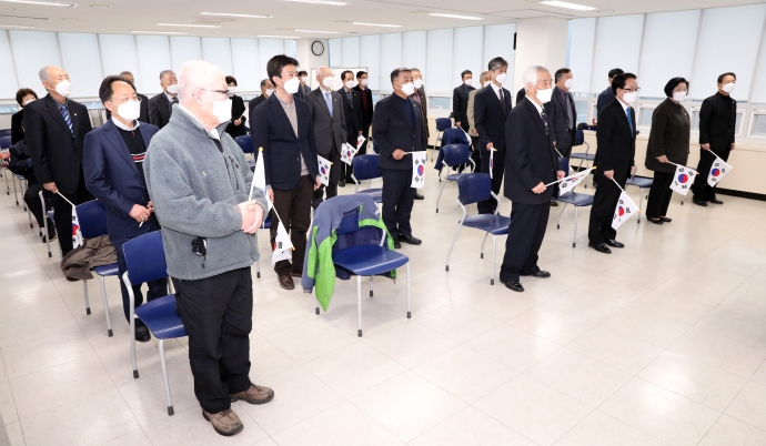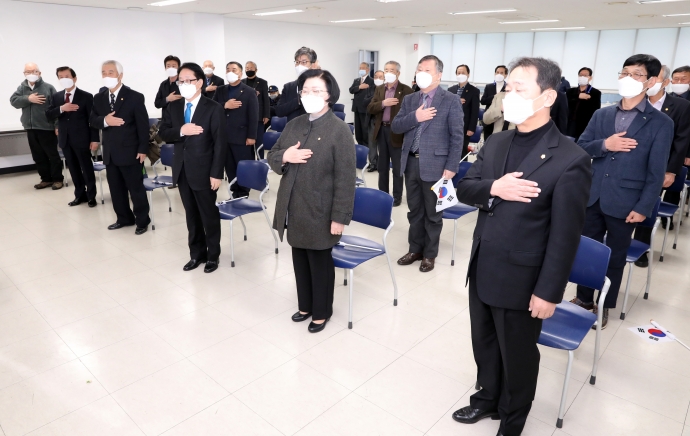 2021년 3월 1일(월) 10:00 하늘내린센터 4층 다목적실에서 김용자의장과 이춘만부의장, 김도형의원, 조춘식의원, 최종열의원은 『제102주년 3.1절 행사』에 참석하여 추모를 함께 했다.
