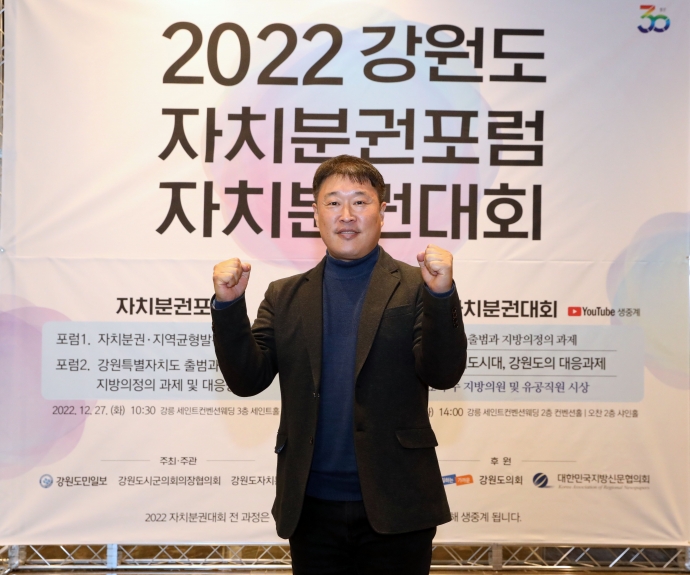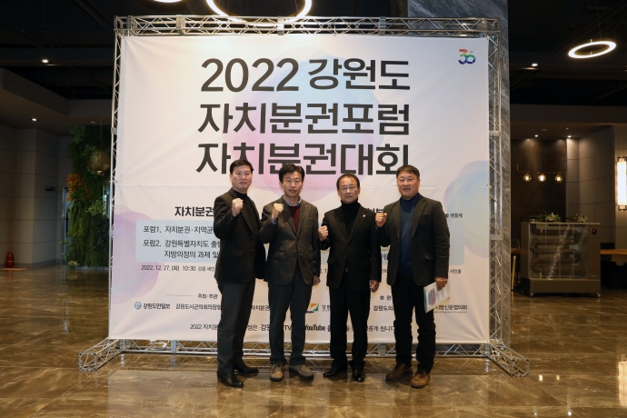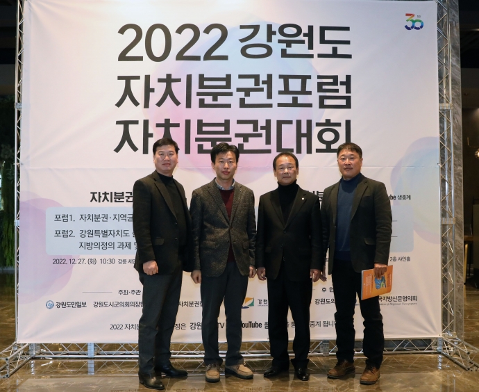 2022년 12월 27일(화) 13:30 강릉 세인트컨벤션웨딩(2층 컨벤션홀)에서 이춘만의장과 김도형의원, 김재규의원, 신동성의원은 『2022 강원도 자치분권대회 개원식』에 함께 했다. 이날 김도형의원은 2022년 강원지방자치발전대상을 수상하였다.