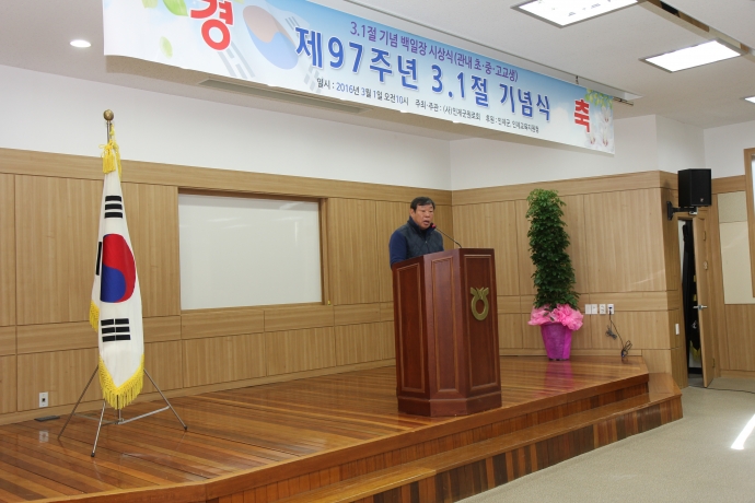 2016년 3월 1일(화) 10:00 농협중앙회인제군지부2층에서 군의회한의동의장 및 군의원들(강순복, 엄윤순, 이기호, 이춘만, 최덕용)은 「제97주년 3.1절 기념식」에 참석하여 3.1절 기념식을 가졌고 3.1절 기념백일장관련 시상하는 관내 초.중.고교생들을 축하 격려해 주었다.