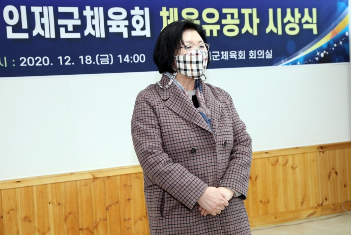 2020년 12월 18일(금) 15:00 인제군체육회회의실에서 본의회 김용자의장은 【2020 인제군 체육유공자 시상대회】에 참석하여 시상과 더불어 축하 격려해주었다.