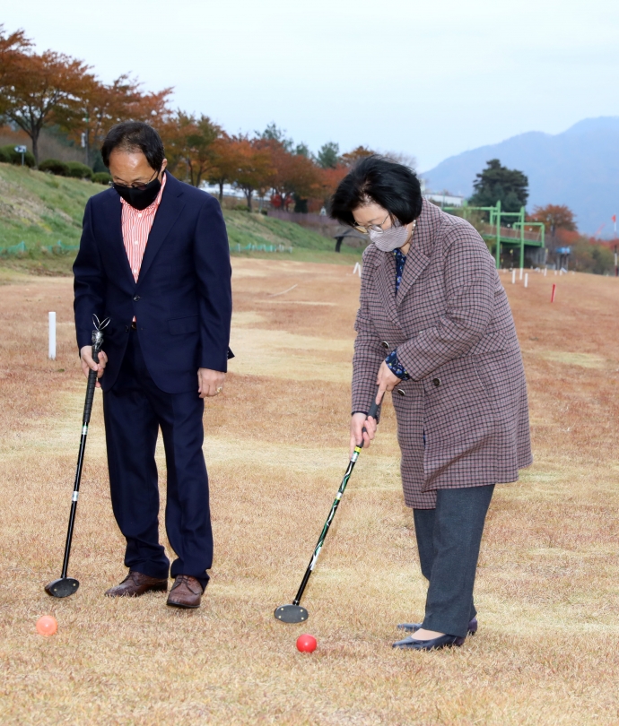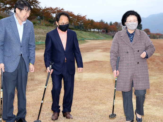 2020년 11월 1일(일) 10:00 인제파크골프장에서 본의회 김용자의장과 최종열의원, 한수현의원은 【인제군 파크골프협회장기대회】개회식에 참석하여 축하 격려해 주었다.
