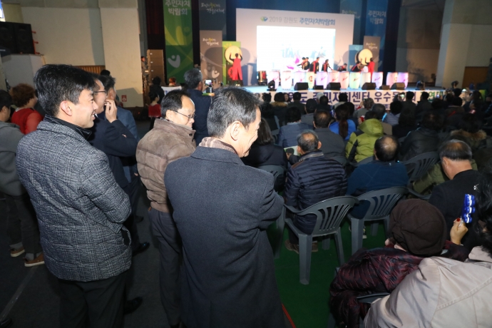 2019년 11월 21일(목) 13:00 속초실내체육관에서 본의회 김상만의장과 김도형의원, 김용자의원, 이춘만의원, 최종열의원, 한수현의원은 【강원 주민자치박람회 개막식】에 참석하여 우리군 대표를 격려해 주었다.