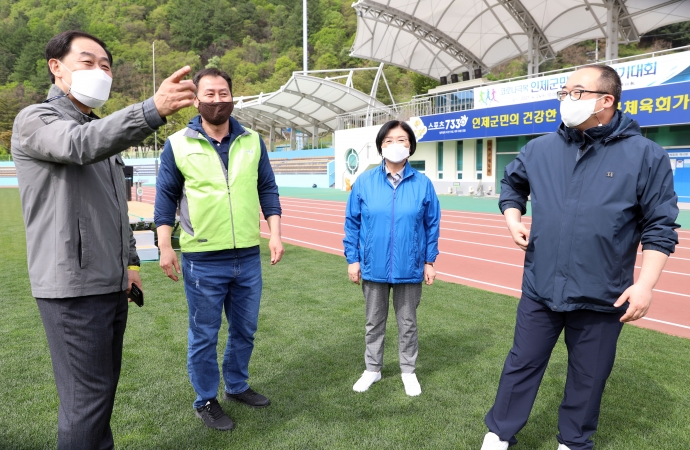 2021년 4월 24일(토) 10:00 인제잔디구장에서 본의회 김용자의장과 김도형의원, 한수현의원은 『인제군민 건강달리기대회』에 참석하여 시총과 군민달리기선수를 격려하였다.