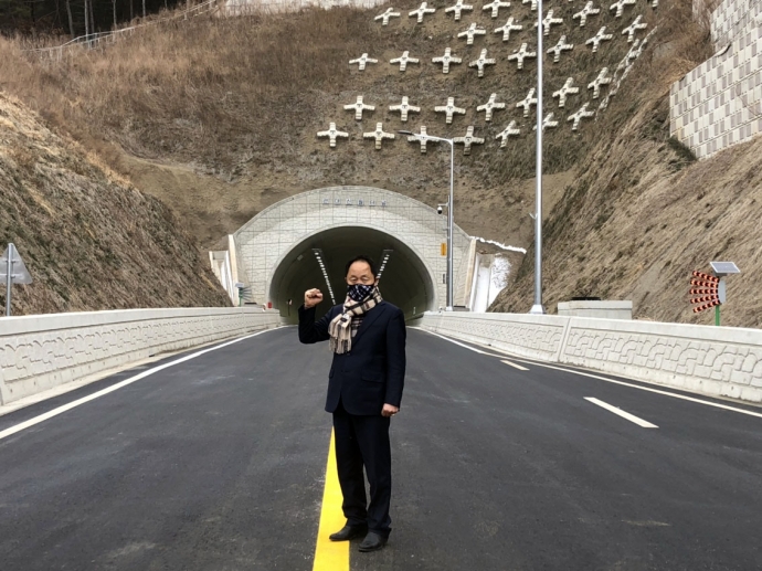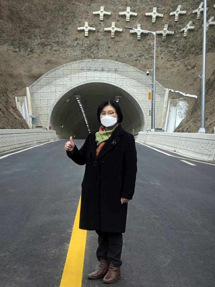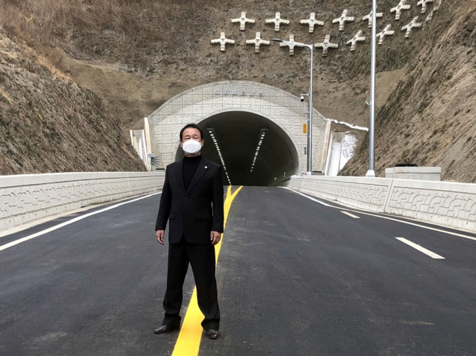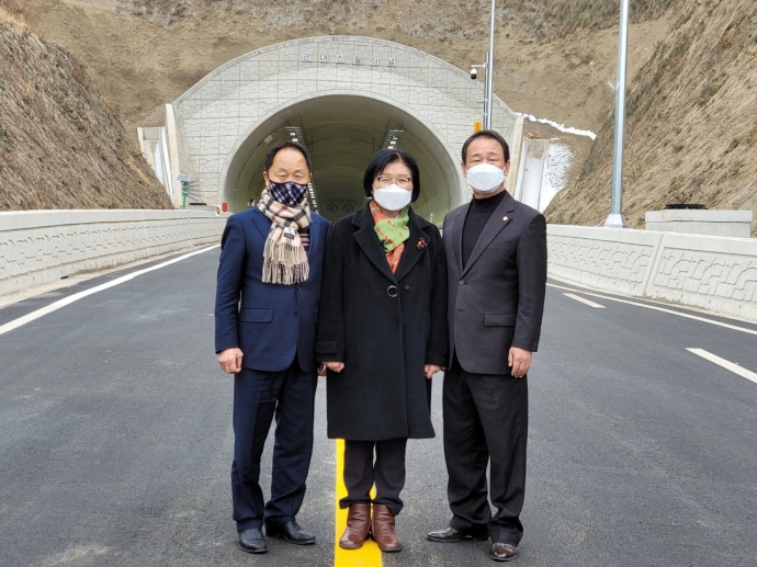 2022년 1월 24일(월) 14:30 신월리 터널입구에서 본의회 김용자의장과 이춘만부의장, 최종열의원은 『관대~신월간 친환경도로 개설사업 개통행사』에 참석하여 축하해 주었다.