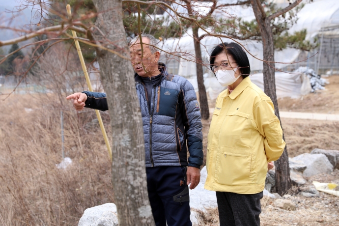 2022년 3월 23일 09:30 귀둔리일대에서 본의회 김용자의장은 『농업기계정비 기술 및 안전교육 』에 현장방문하여 격려해주었다.