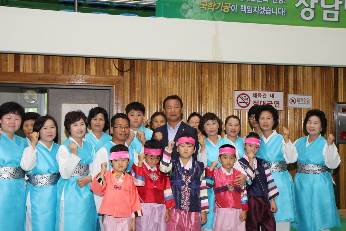 2015년 6월 27일(토) 오전9시 30분~오후3시까지 인제체육관에서 국학기공대회 참가자 250여명이 모여 국민생활체육 인제군국학기공연합회 주관으로 제 1회 연합회장기 국민생활체육 인제군국학기공대회를 개최하였음. 인제군의회 의장(한의동)과 부의장(강순복) 및 의원들이 국학기공대회 참가자분들을 격려하였음. |