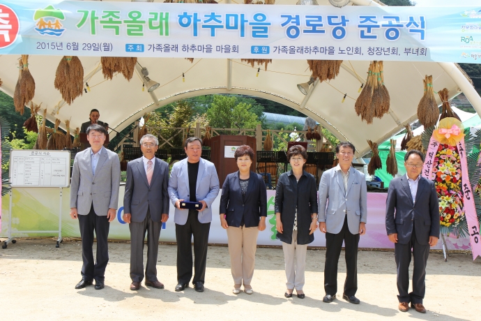2015년 6월 29일(월) 인제군의회 의장(한의동) 및 부의장(강순복) 의원들은 하추리경로당 준공식에 참석하여 하추리주민들을 축하해 주었음.