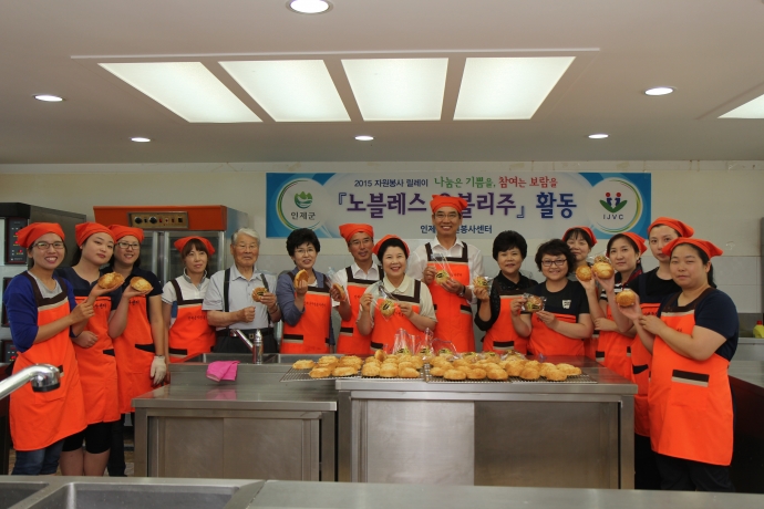 2015년 6월 15일(월) 10:30 농업기술센터 제빵조리실에서 군의회부의장(강순복), 군의원(엄윤순)는 제빵봉사자들과 함께 빵을 만들어 "노블레스 오블리주 자원봉사"을 실천하였음.