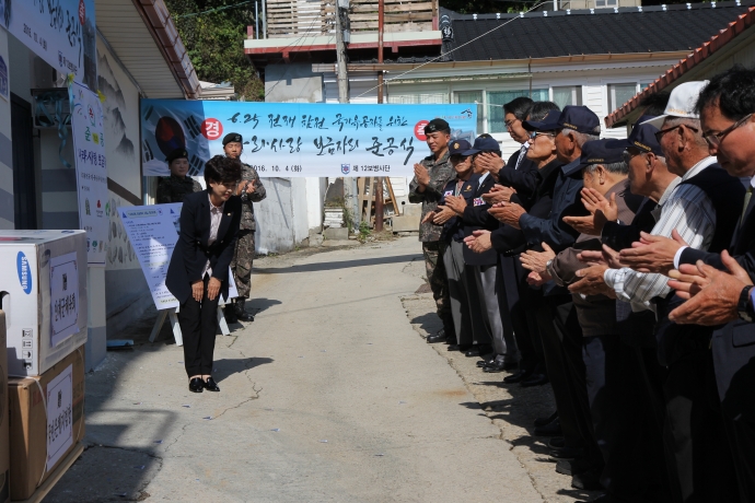 2016년 10월 4일(화) 10:00 원통 2리 강재복댁에서 인제군의회 엄윤순부의장은『 나라사랑 보금자리 준공식』에 참석하여 축하 해 주었다.