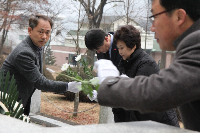 2017년 1월 2일(월) 8:40 충혼탑(인제읍 상동리)에서 군의회한의동의장과 엄윤순부의장 강순복의원 이기호의원은 2017년 새해을 맞이하여 충혼탑 참배를 가졌다.