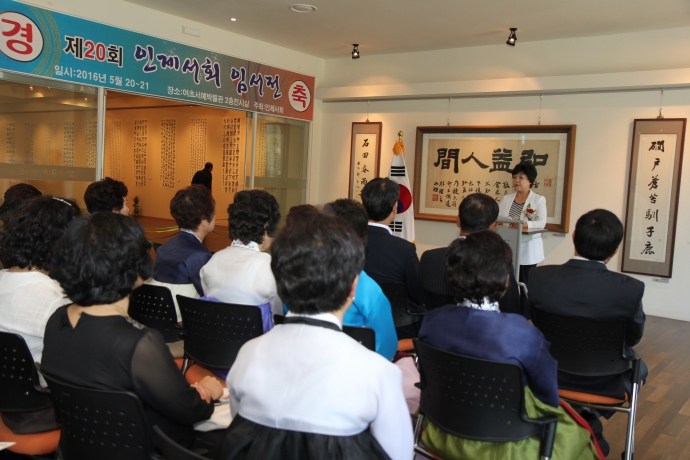 2016년 5월 20일(금) 14:00 여초서예관에서 인제군의회강순복부의장은 【제20회 인제서회 임서전】에 참석하여 축사와  임서전관람 후 인제서회 회원들을 축하 격려해주었다.