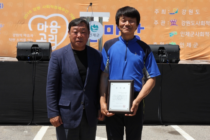 2016년 7월 9일(토) 11:00 인제로컬푸드 판매장앞에서 인제군의회한의동의장및 엄윤순부의장 강순복의원 이기호의원은 【2016년 강원도사회적경제인 한마당행사 직거래장터】개장식에 참석하여 축하 격려해주었다.