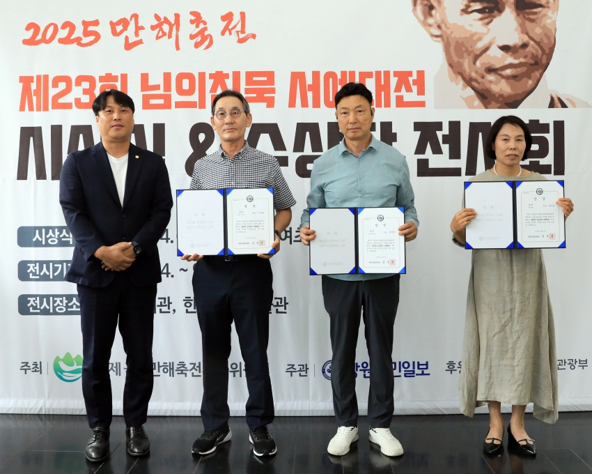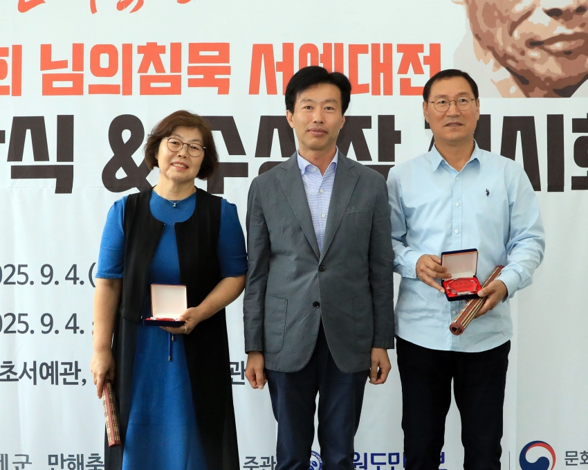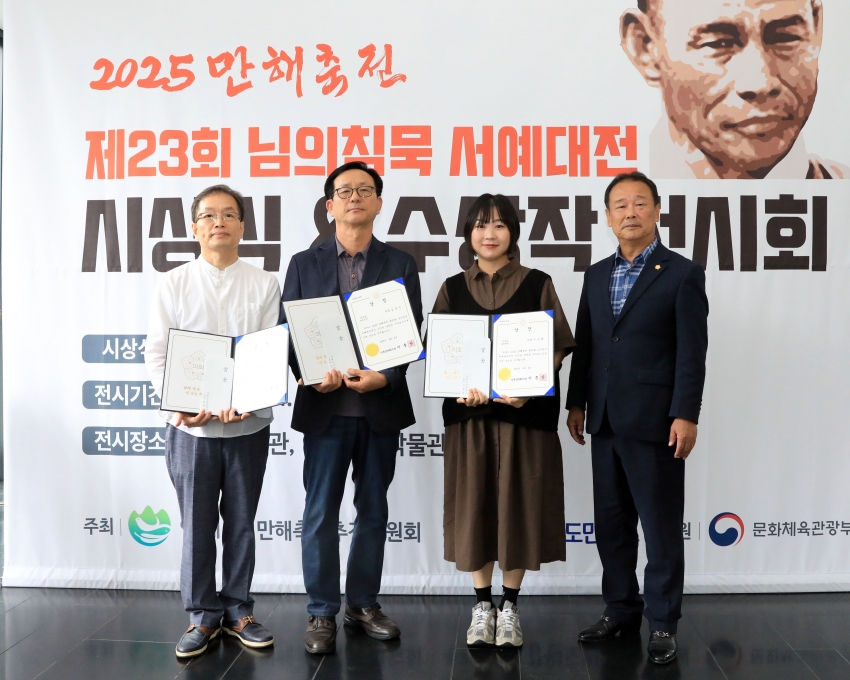 2025년 9월 4일(목) 오전 11시 여초서예관에서 개최한 『제23회 님의침묵 서예대전』에 이춘만의장과 김도형의원, 이수현의원이 참석하여 수상자들을 축하해 주었다.