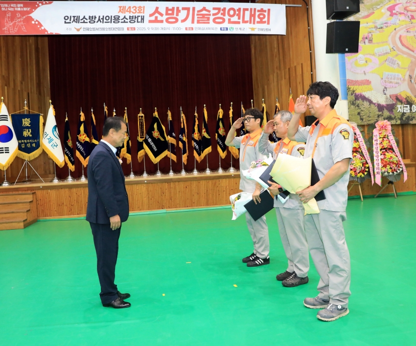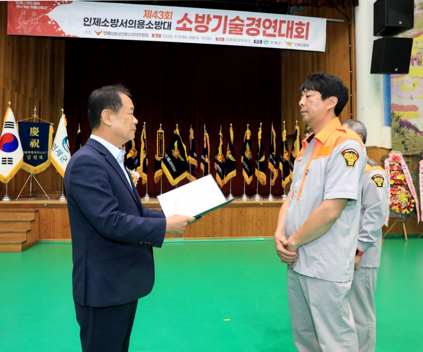 2025년 9월 9일(화) 오전 11시 인제실내체육관에서 개최된 『제43회 인제소방서 의용소방대 소방기술경연대회』에 이춘만의장이 참석하여 축하와 응원의 자리를 함께 하였다.