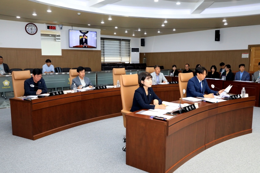 | 2025년 9월 11일(목) 오전 10시 본회의장에서 개최된 『제272회 인제군의회 임시회 제2차 본회의』에 이춘만의장과 군의원들(신동성부의장, 김도형의원, 김재규의원, 이수현의원, 황현희의원)이 아래와 같이 회의를 가졌다.
