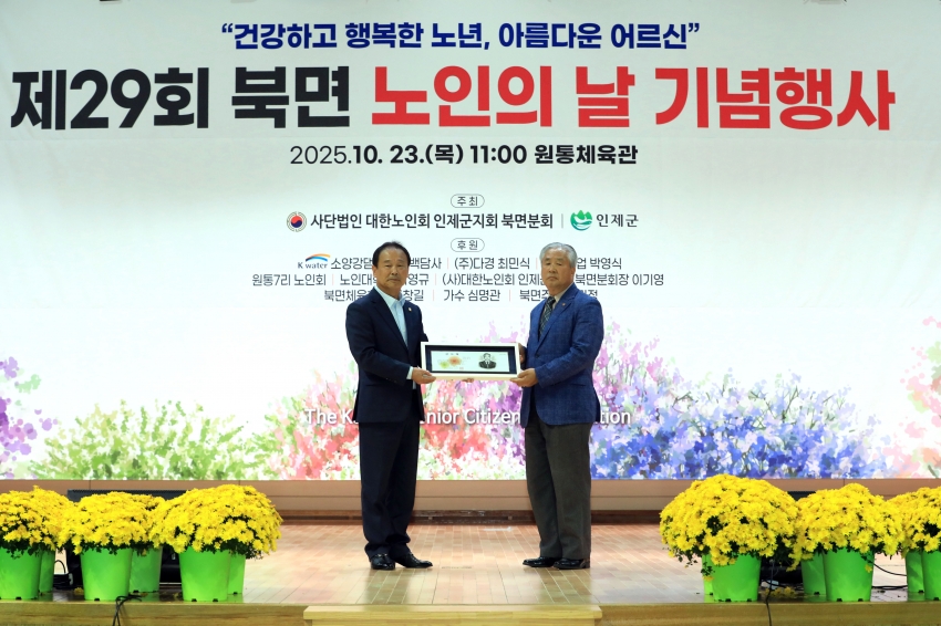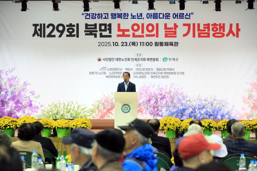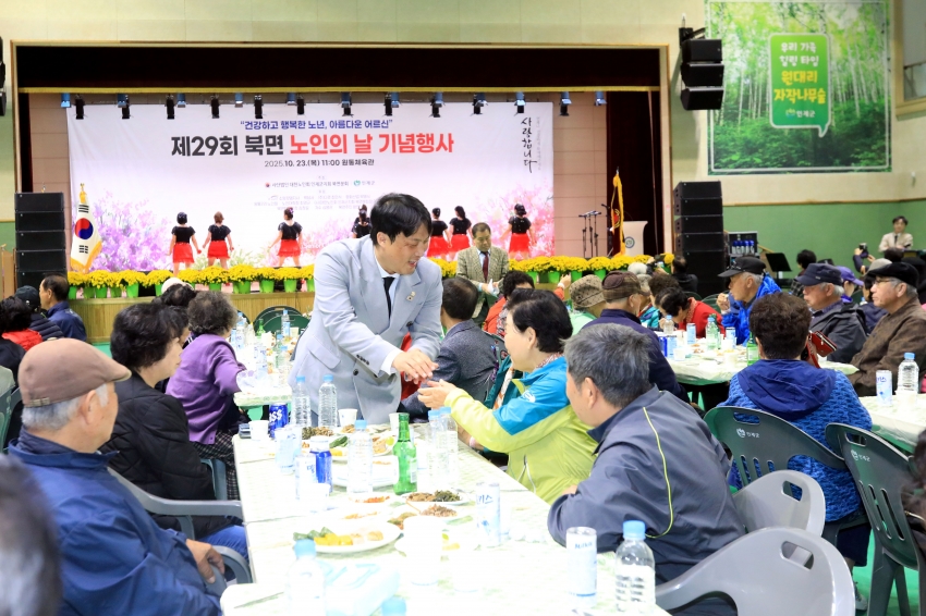 2025년 10월 23일(목) 오전 11시 원통실내체육관에서 개최된 『제29회 북면 노인의 날 기념행사』에 이춘만의장과 군의원들(신동성부의장, 김도형의원, 이수현의원, 황현희의원)이 참석하여 북면어르신들과 뜻깊은 시간을 함께 보냈다.
