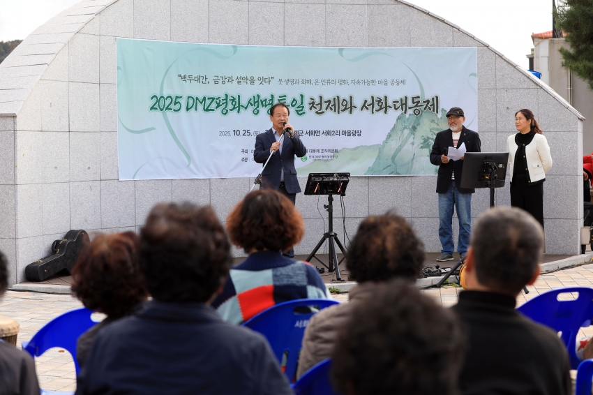 2025년 10월 25일(토) 오후 2시 20분 서화 2리 공원광장에서 개최된 『2025 DMZ평화생명통일 천제와 서화 대동제』에 이춘만의장과 신동성부의장, 김도형의원이 참석하여 서화주민들과 소통의 자리를 함께 하였다.
