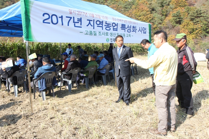 2017년 10월 25일(수) 10:00 인제군 남면 어론리 649-3에서 본의회 이춘만의원은 【2017년 지역농업 특성화사업 설명회】에 참석하여 함께 했다.