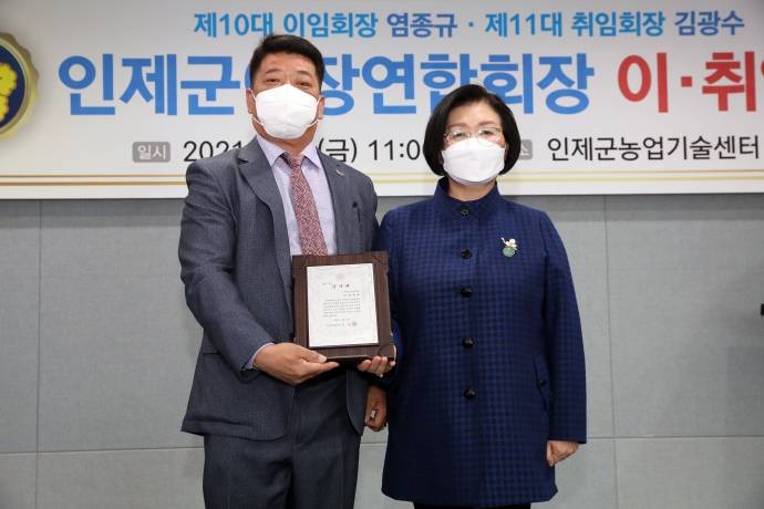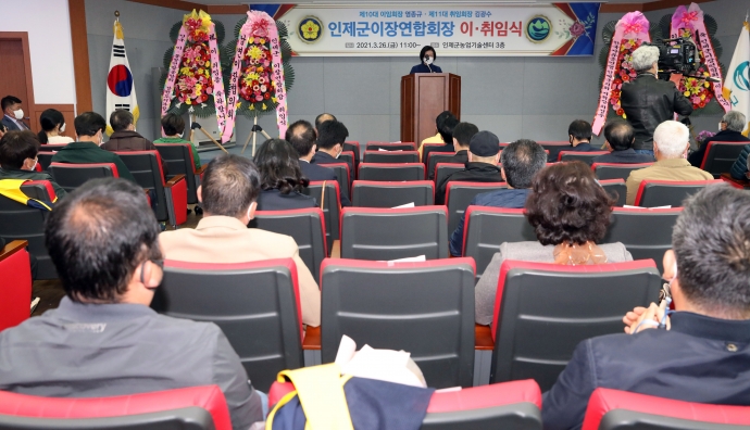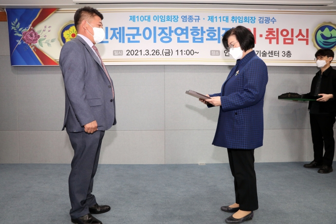인제군 이장엽합회장 이.취임식 및 인제군마을방역단발대식