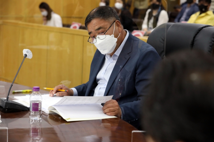 2021년 5월 10일(월) 10:00 본회의장에서 김용자의장과 군의원들(이춘만부의장, 김도형의원, 조춘식의원, 최종열의원)은 【제246회 인제군의회 임시회 제1차본회의】를 실시하였다.