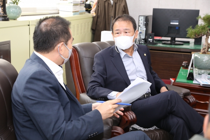 2021년 10월 19일(화) 11:00 본의회의장실에서 김용자의장과 이춘만부의장, 김도형의원, 김상만의원, 조춘식의원, 최종열의원, 한수현의원은 「제15차 정기등원회의」를 가졌다.