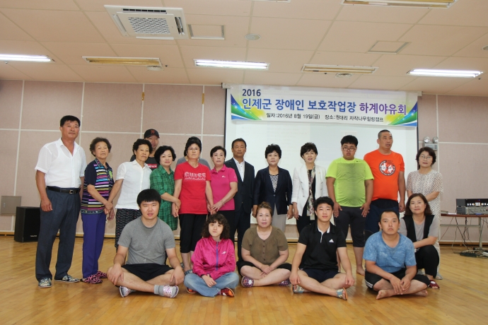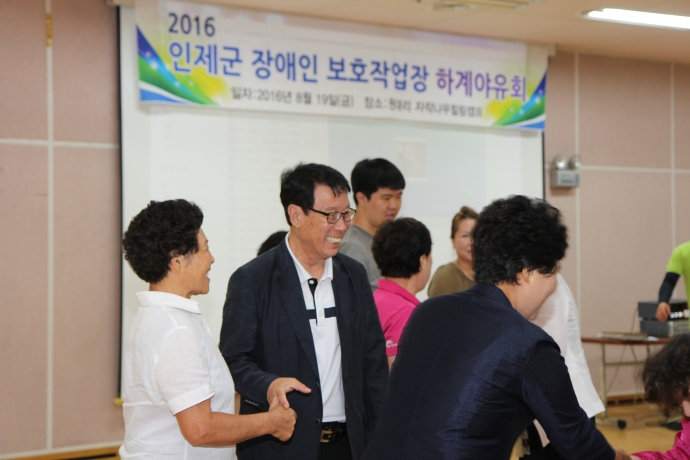 2016년 8월 19일(금) 10:30 인제군의회 엄윤순부의장과 이춘만군의원, 최덕용군의원 강순복군의원은 【지체장애인협회 및 장애인보호작업장 야유회】에 독려차 들려 자리를 같이 했다.