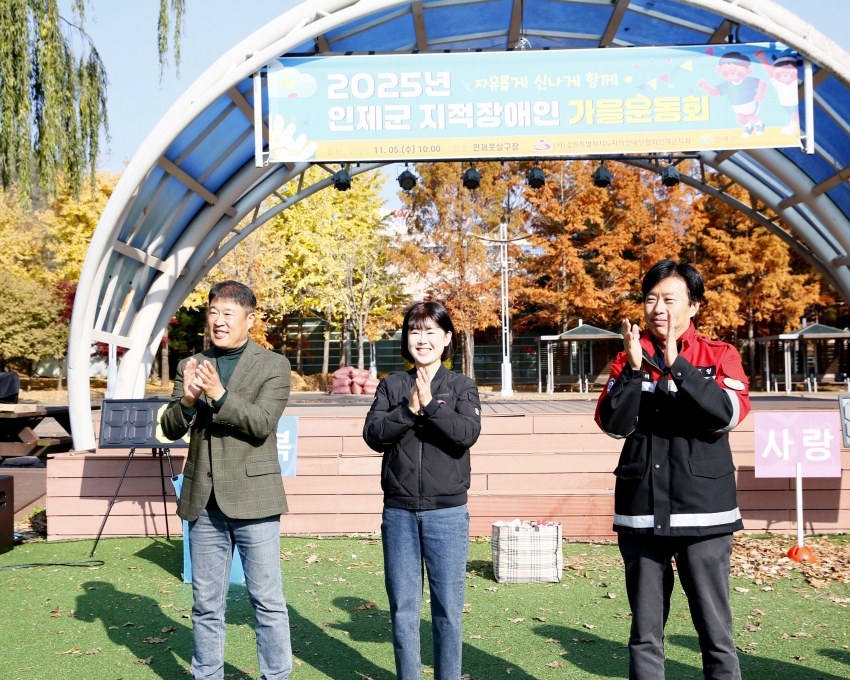 2025년 11월 5일(수) 오전 10시 인제풋살구장에서 개최한 『2025년 인제군 지적장애인 가을운동회』에 이춘만의장과 군의원들(신동성부의장, 김도형의원, 김재규의원, 황현희의원)이 참석하여 응원에 한마당을 함께 하였다.